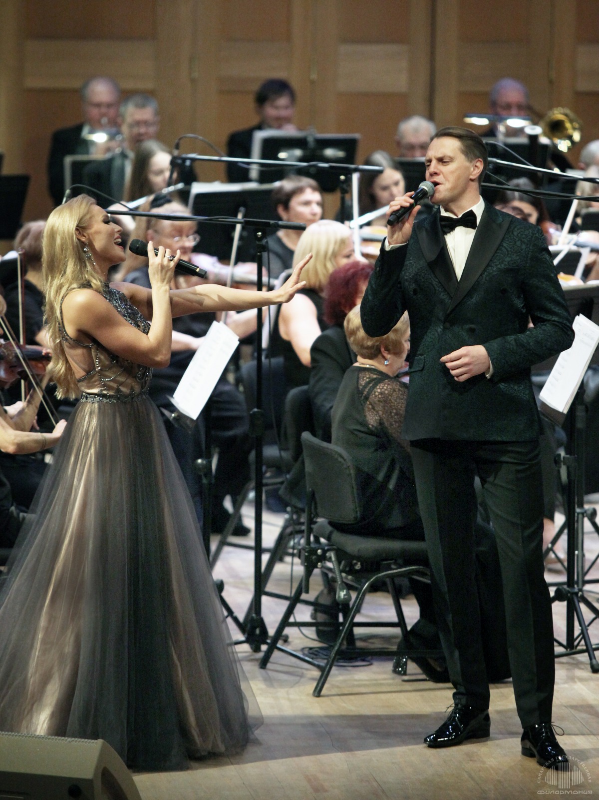 На сцене вместе с Академическим симфоническим оркестром филармонии под управлением Владимира Добровольского выступили актёр музыкального театра, певец, лауреат национальных театральных премий «Золотая маска» и «Музыкальное сердце театра» Иван Ожогин и актриса мюзиклов, певица Анастасия Вишневская. Концерт вела лектор-музыковед Ирина Цыганова.