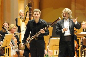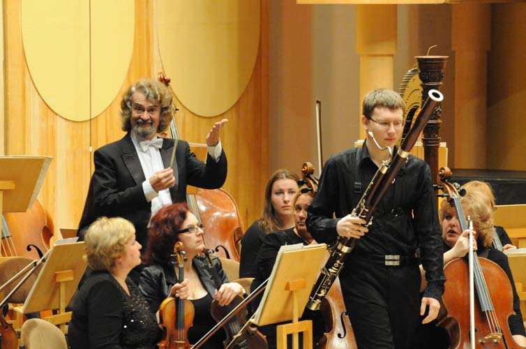 На этот раз самарские любители классики услышали выступление трех российских музыкантов - пианиста, лауреата V Международного конкурса пианистов им. Фредерика Шопена Даниила Малюты из Казани, исполнителя на фаготе, лауреата I премии XVI Тольяттинского Международного конкурса музыкантов Дмитрия Никитиченко из Санкт-Петербурга и виолончелистки, аспирантки Берлинского института искусств Дины Большаковой. У молодых музыкантов было всего три репетиции с оркестром Самарской филармонии. Не так много. Но, несмотря на это, на концерте чувствовалась удивительная слаженность исполнения всех трех солистов и оркестра Самарской государственной филармонии под управлением его главного дирижера, народного артиста России Михаила Щербакова.